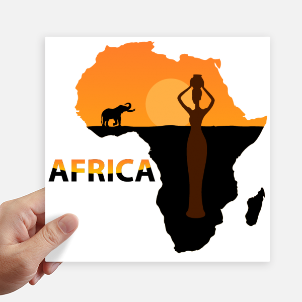 非洲大草原大象黑人女性 方形贴纸20cm摩托电脑贴画旅行箱装饰4片