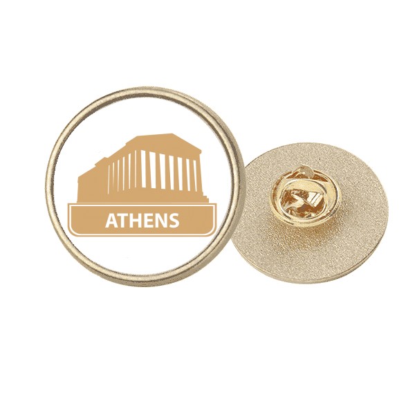 希腊雅典黄色地标建筑图案 金色金属饰钉胸针徽章