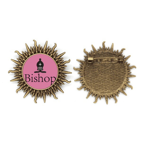 主教黑色单词国际象棋 复古金属太阳胸针挂钩别针
