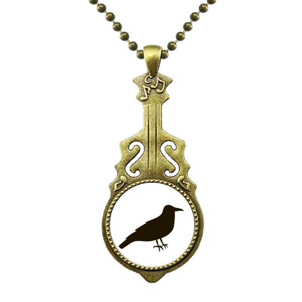 黑色乌鸦动物剪影 吉他复古项链吊坠首饰