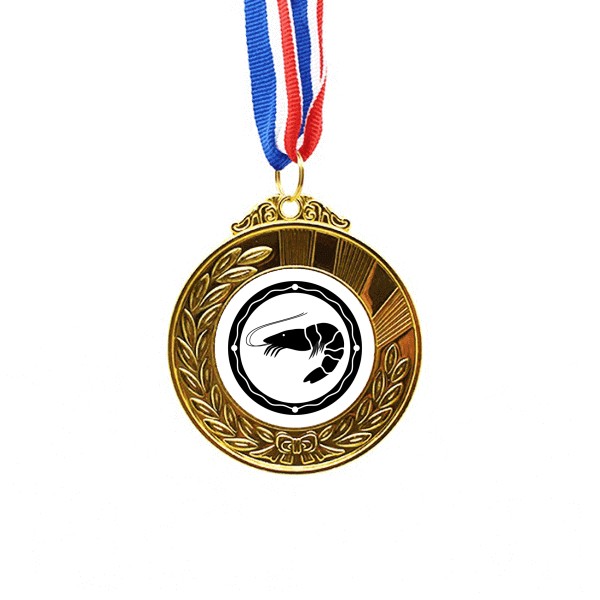 海洋生物黑色虾插画 金奖得主奖牌金牌项链纪念