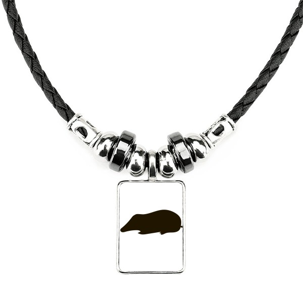 黑色鼹鼠动物剪影 手工皮绳项链吊坠饰品