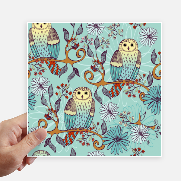 蓝色花猫头鹰保护动物爱宠人士 方形贴纸20cm摩托电脑贴画旅行箱装饰4片