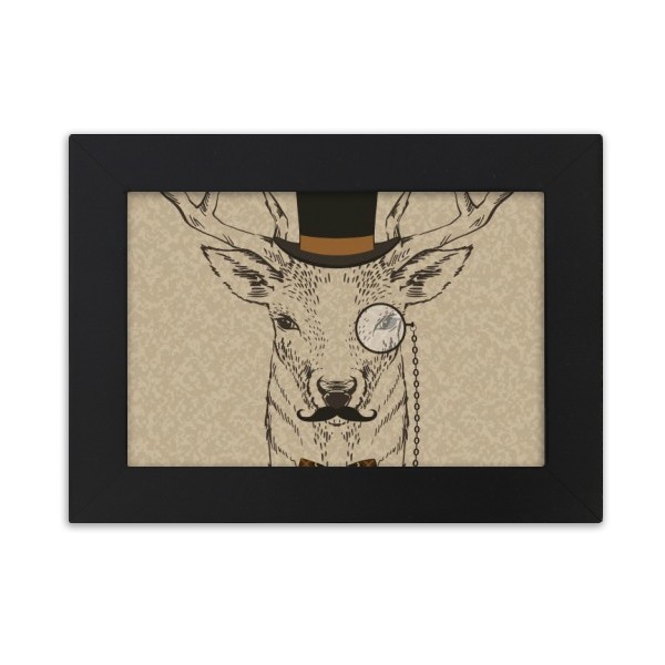 英伦风带帽子眼镜和领结的绅士胡子鹿 实木相框摆台黑色家居装饰画框6寸
