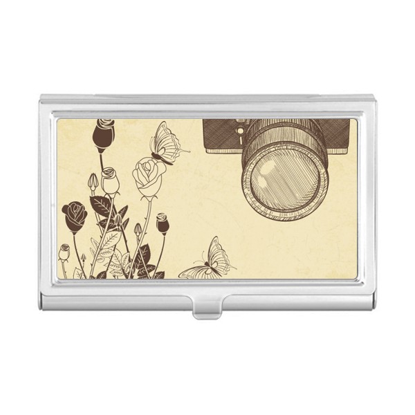 复古相机玫瑰蝴蝶图案 金属名片夹名片盒卡包