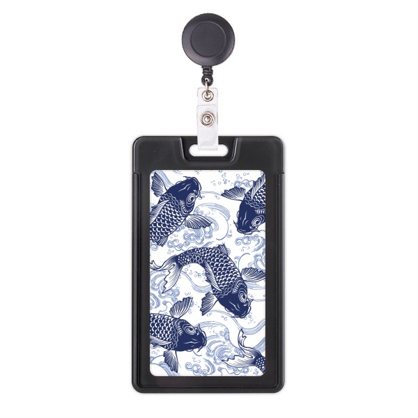 日本鲤鱼波浪蓝色纹样 易拉扣挂绳证件胸卡套