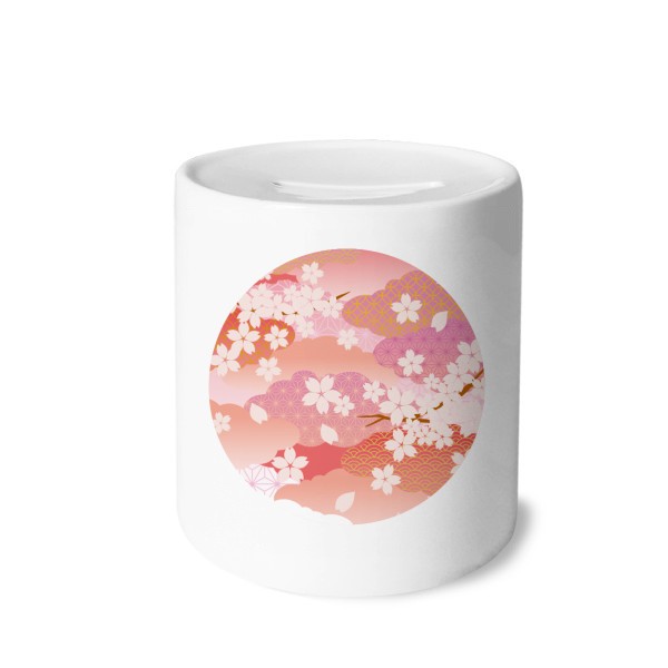 花云朵粉红纹样 陶瓷存钱罐白色硬币储蓄盒礼物