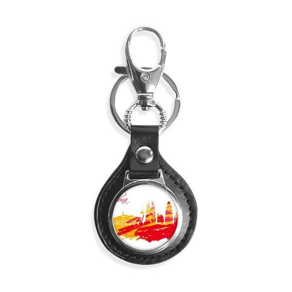 手绘城市剪影红黄巴塞罗那 汽车钥匙扣金属皮革链圈环挂件礼物