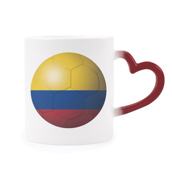 哥伦比亚国旗足球纹样 加热变色陶瓷马克杯红色心形把手