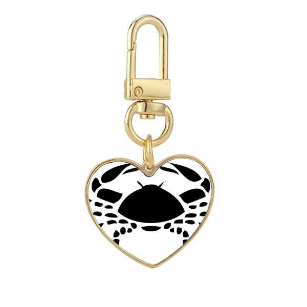 星座巨蟹座标志剪影插画图案 金色心形钥匙扣金属钥匙圈