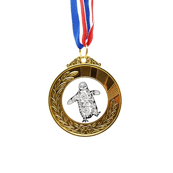 可爱笨拙企鹅动物黑白手绘 金奖得主奖牌金牌项链纪念
