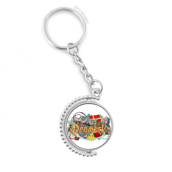 新港腓特烈堡丹麦涂鸦 旋转汽车钥匙扣挂件礼物