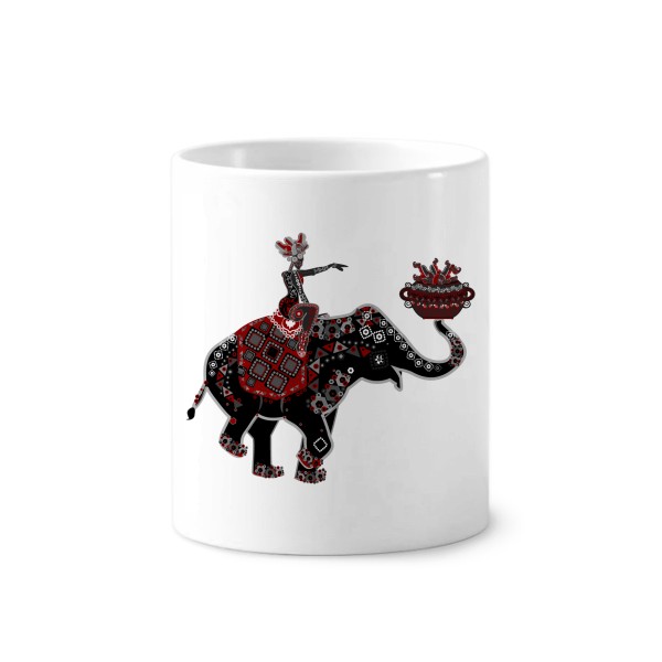大象表演中国少数民族装扮图腾民俗风俗剪影插画图案 陶瓷刷牙杯子笔筒白色马克杯礼物