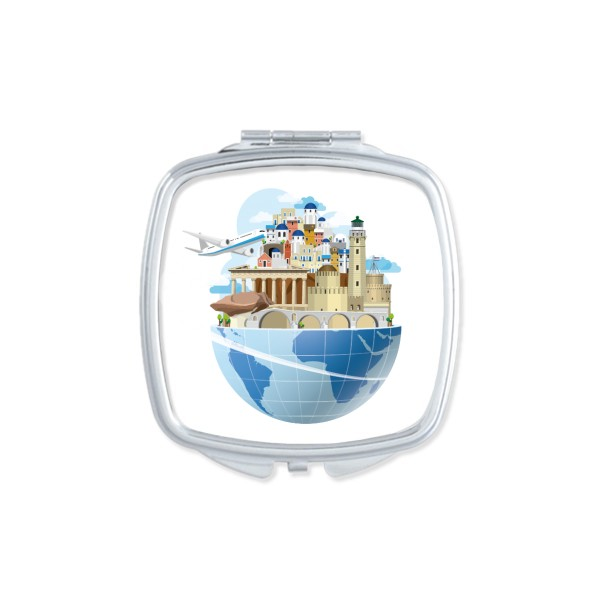 世界旅行爱琴海希腊飞机 方形化妆镜子便携小镜子迷你简约双面镜礼物