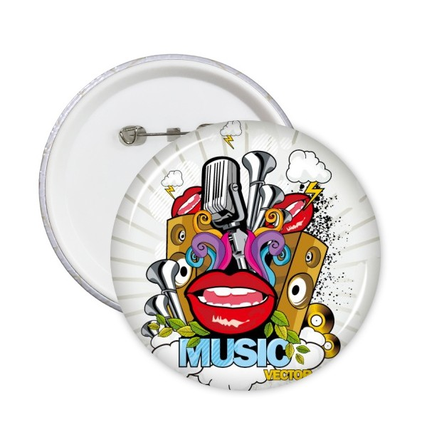 涂鸦街头文化彩色嘴唇麦克风音响云朵闪电音乐载体美式艺术图案 圆形徽章胸章胸牌装饰挂牌5件