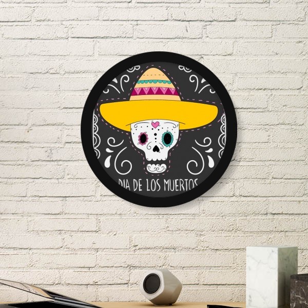 礼帽花心形骷髅头墨西哥文化亡灵节快乐插图 圆形简约装饰画家居装饰画框礼品礼物