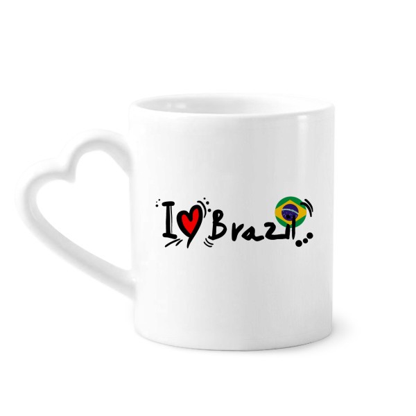 我爱巴西文字爱心国旗艺术字插画图案 陶瓷杯子白马克杯心形把手礼物