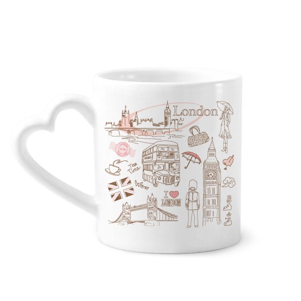 我爱伦敦英国大本钟公共汽车 陶瓷杯子白马克杯心形把手礼物