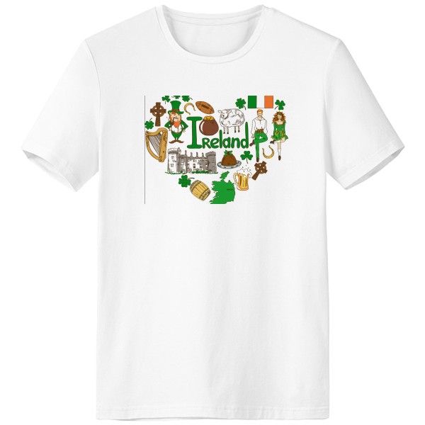 爱尔兰心形民俗插画图案 男女白色短袖T恤创意纪念衫个性T恤衫礼物