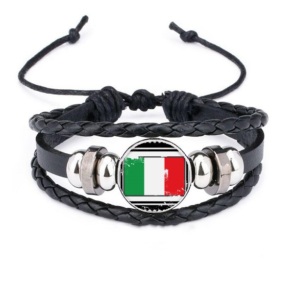 意大利国旗欧洲插画图案 皮革编制手链腕带礼品礼物