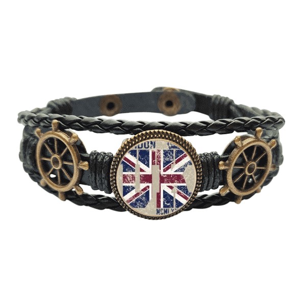 伦敦英国地标国旗标记插画 海洋船舵皮革手链腕带礼物