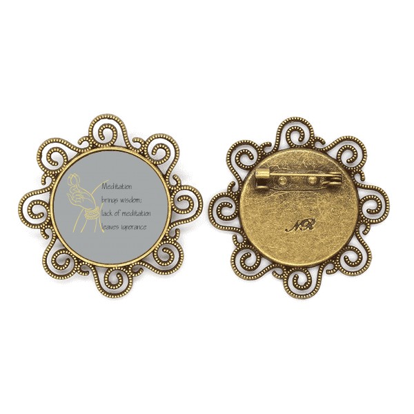 冥想带来智慧吉祥英文 复古金属花朵胸针别针首饰