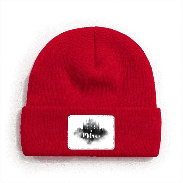 意大利米兰地标水墨城市 保暖舒适针织翻边针织帽子