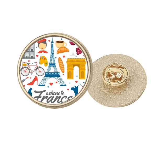 法国地标埃菲尔铁塔风景 金色金属饰钉胸针徽章