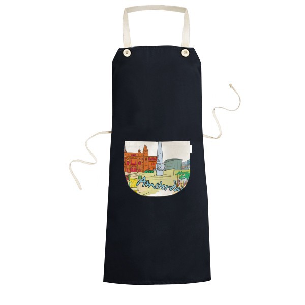 荷兰阿姆斯特丹运河梵高博物馆水彩画 黑色家居厨房围裙咖啡厅网咖奶茶店工作服礼物礼品