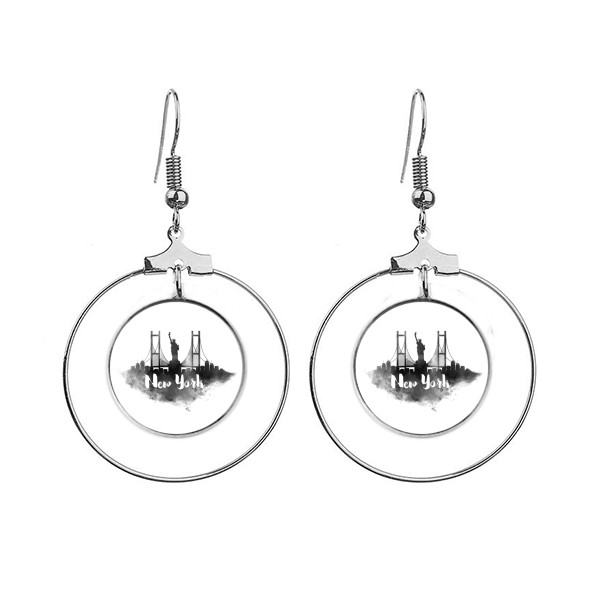美国纽约地标水墨城市画 女士耳环耳挂耳坠首饰