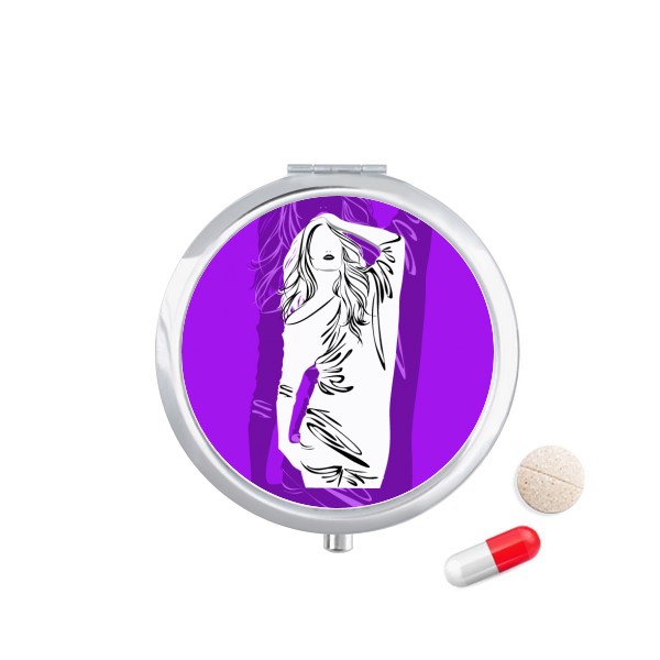 紫色美丽长发女人 圆形药盒便携镜子迷你药丸盒子礼物