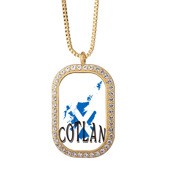 苏格兰地图旗帜文化 金色项链镶钻水晶吊坠吊牌