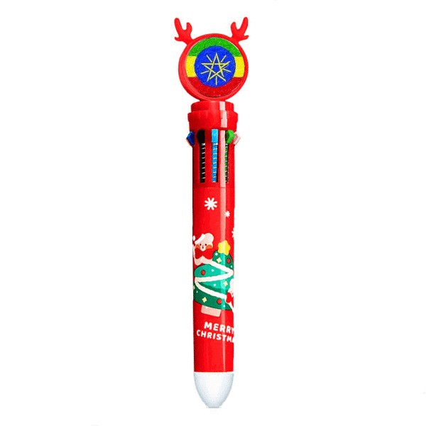 红黄绿条纹埃塞俄比亚国旗国家文化元素 彩色圆珠笔圣诞树圣诞老人彩笔