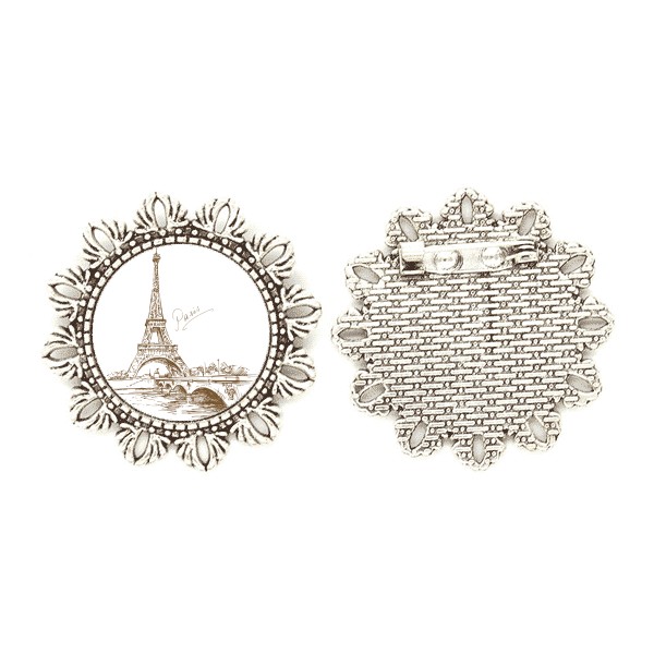 埃菲尔铁塔法国巴黎地标建筑 银色花朵胸针饰品别针