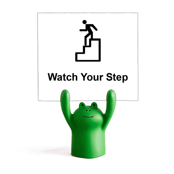 注意脚下黑色警示标志 便签架卡通动物青蛙举手装饰