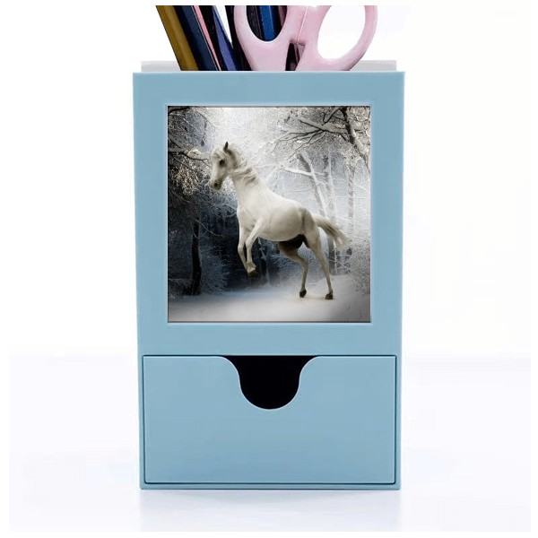 白马树木自然景色 抽屉笔筒文具办公收纳盒
