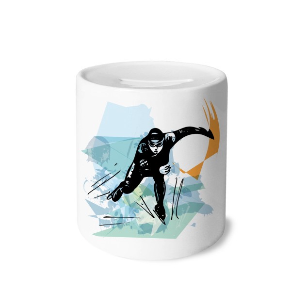 冬季速滑水彩男运动员 陶瓷存钱罐白色硬币储蓄盒礼物
